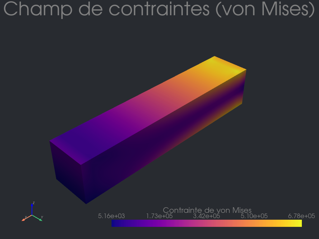 # =========================# MÉCANIQUE# =========================mu = E / (2* (1+ nu))lmbda = E * nu / ((1+ nu) * (1-2* nu))def epsilon(u):return ufl.sym(ufl.grad(u))def sigma(u):return ( lmbda * ufl.tr(epsilon(u)) * ufl.Identity(3)+2* mu * epsilon(u) )
